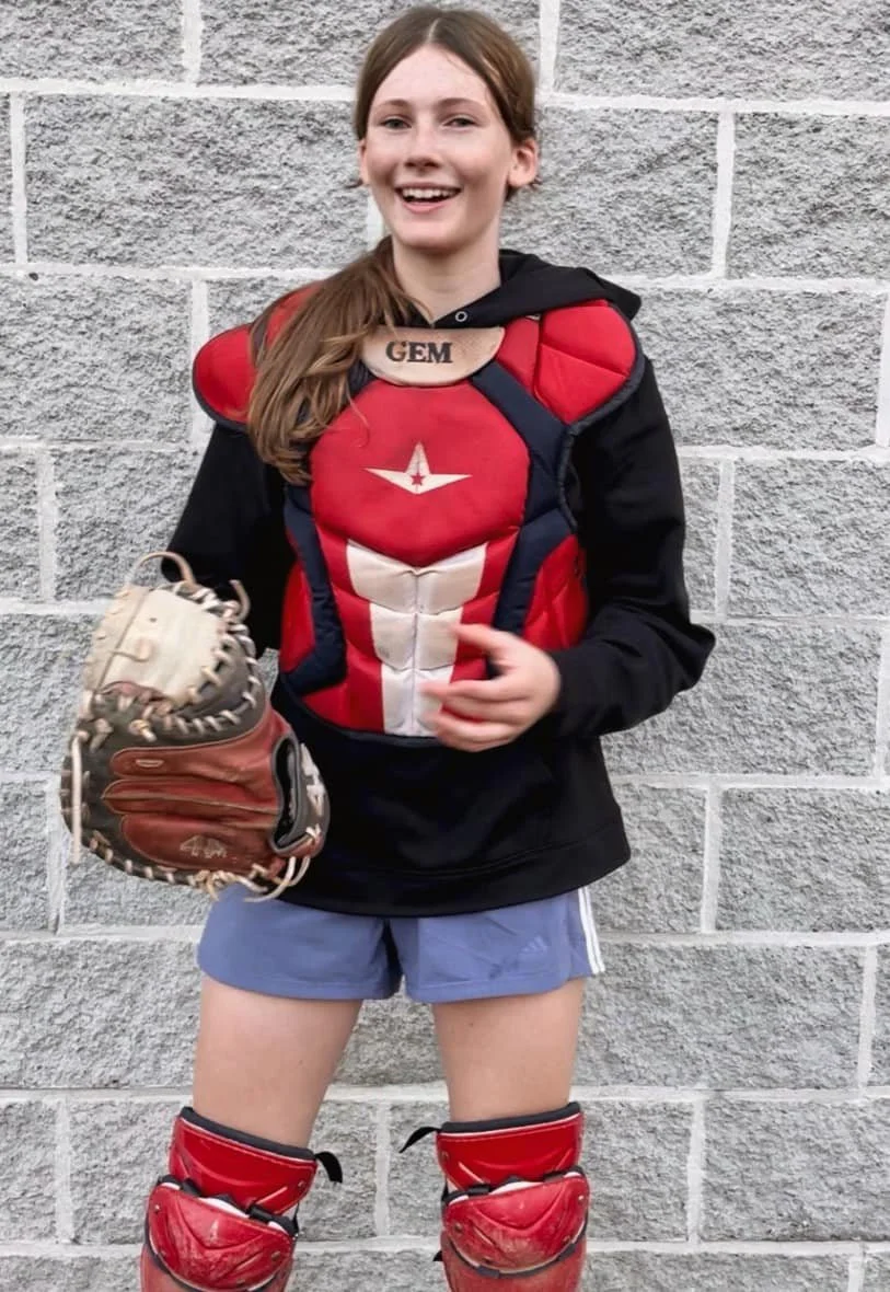 Founder, Grace Murray knew she wanted to design T.A.G.’s logo but never imagined she would go with her initial sketch. “I was playing with colors, layouts and player positions. I originally wanted the silhouette to be a catcher because I catch, but after thinking about it more, not everyone catches, but everyone does hit.” Deciding on the silhouette being a batter was more inclusive for all girls. This picture taken in 2023 was the inspiration for the silhouette
